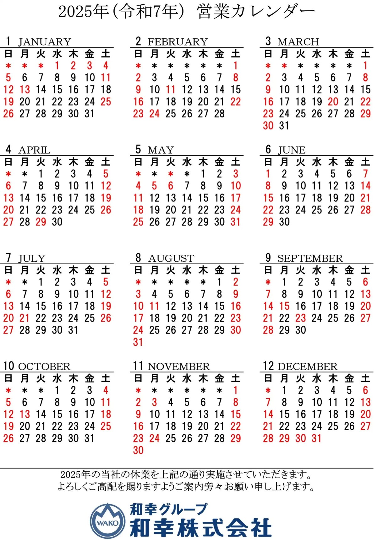 年間カレンダー